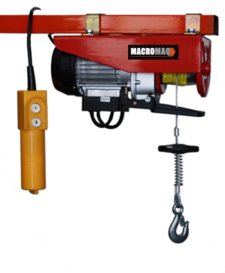 GUINCHE MMQ – ME 500 / 1000 Kg Motor: MONOFASICO – 2HP Tiro Directo: 500 Kg – 12 Mts de izaje. Tiro con Reenvio: 1000 Kg – 6 Mts de izaje. Cable: Diametro 5.6mm