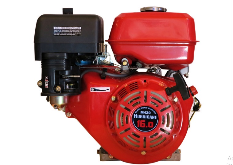 MOTOR NAFTERO: HURRICANE – LT420 Potencia: 16 HP x 3600 RPM – OHV – 4 Tiempos Arranque: Manual. – Alert / Oil. Eje: Horizontal – Cilíndrico – Diámetro: 25mm